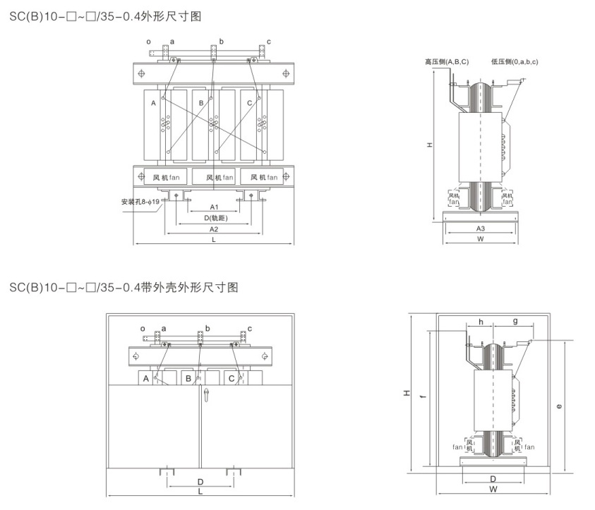 保护外壳对变压器作进一步的安全保护,防护等级有IP20 、IP23 等,外壳材料有冷轧钢板,不锈钢板等供用户选择低压出线用标准母线排出线,侧出线和顶出线均可,也可为用户设计特殊出线方式。