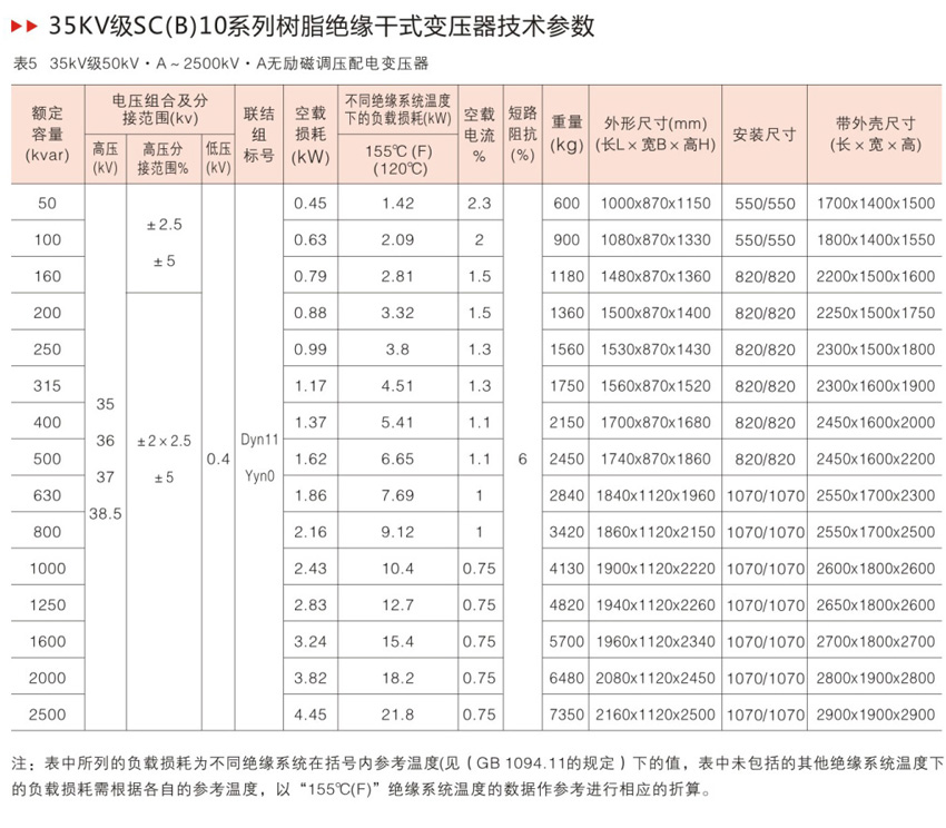 树脂绝缘干式变压器是我公司引进国外先进技术,自主开发了SC9 、SCB9系列以及SC10 、SCB10 系列带填料薄绝缘干式变压器,由于线圈被环氧树脂包封,所以难燃,防火、防爆,免维护,无污染,体积小,可直接安装在负荷中心。同时科学合理的设计和浇注工艺,使产品局部放电量更小,噪声低,散热能力强,在强迫风冷条件下可以在140 %额定负载下长期运行,并配有智能温控仪,具有故障报警,超温报警,超温跳闸以及黑闸子功能,并通过RS485 串行接口与计算机相连,可以集中监视和控制。