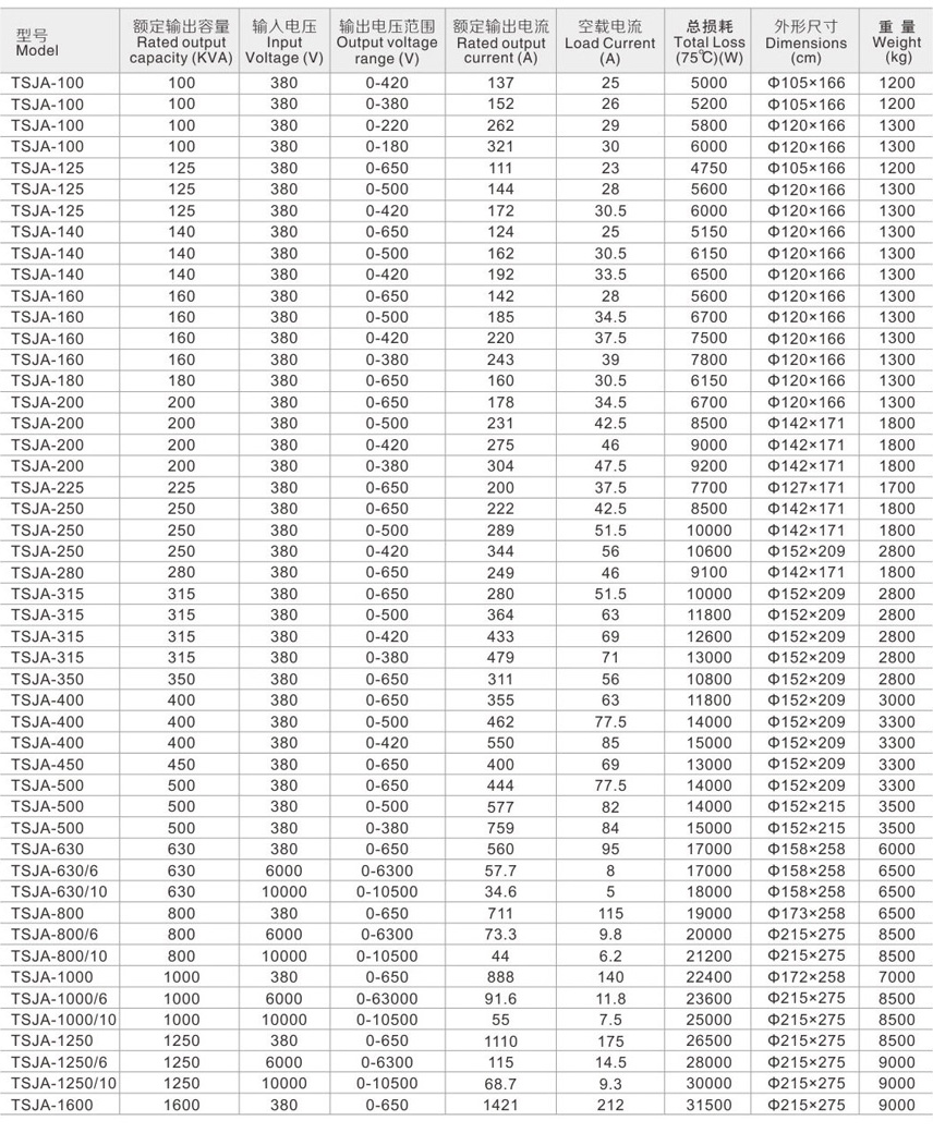 油浸式感应调压器TSJA.[功率100KVA-1600KVA]、[电压范围0-180V,0-380V,0-420V,0-500V,0-650V,0-900V,0-1200V等等,]特殊产品特殊设计。调压器主要用于电机试验,变压器试验.电炉控温等。