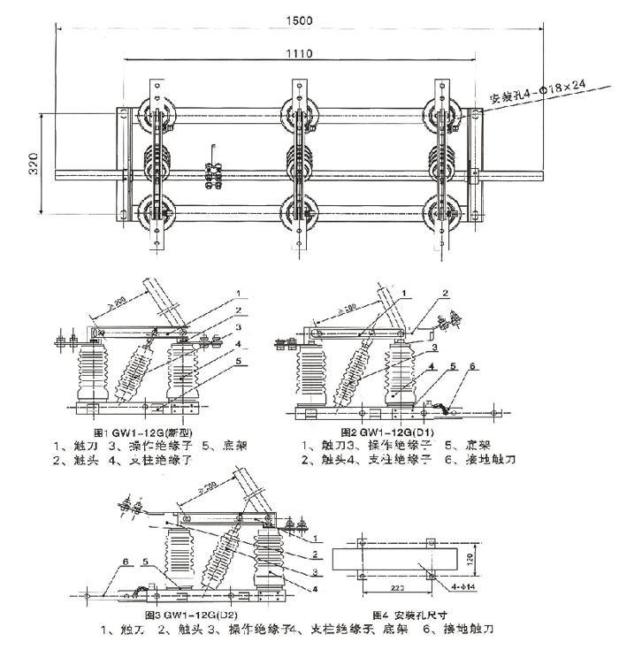 GW1-12系列户外高压隔离开关。为单极或三相联动的高压开关设备,在户外12KV线路网络中有电压无负载情况下分、合电路之用,带接地刀的开关,配用CS型手动机构,可防止带电接地线和带接地线“合闸”等误操作,操作人员也不必再挂地线。其中防污型户外高压隔离开关可满足严重秽地区用户的要求,可以有效地解决隔离开关在运行中出现的污闪问题。