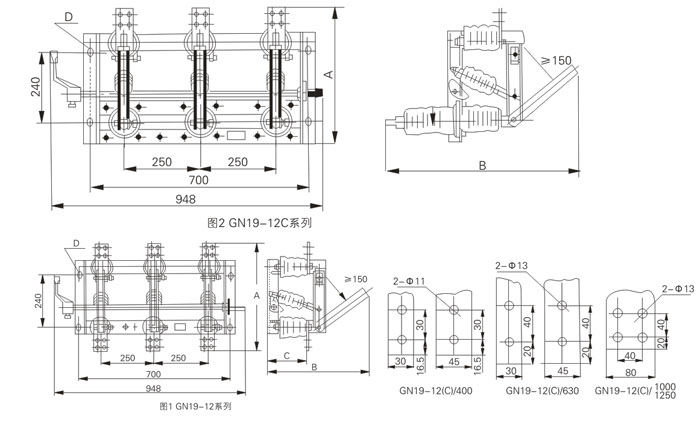 GN19-12型系列户内高压隔离开关系高压开关设备,用于额定电压12KV,交流50Hz及以下电力系统中,配用CS6-1型人力操作机构,作为在有电压而无负载的情况下,分,合电路之用,亦有派生产品防污型,高原型的和加装带电显示装置等。