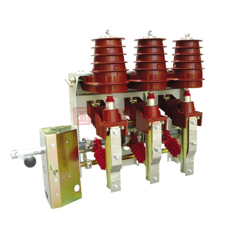 FKN12-12和FKRN12-12D熔断器组合电器是额定电压12KV、额定频率50Hz的三相高压开关设备用于分合负荷电流、闭环电流、空载变压器和电缆充电电流、关合短路电流、熔断器组合电器可开断短电流,配装接地开关的负荷开关、可以承受短路电流,主要用于三相环网或终端供电的示区配电电站和工业用电设备中,作负荷控制和短路保护之用。